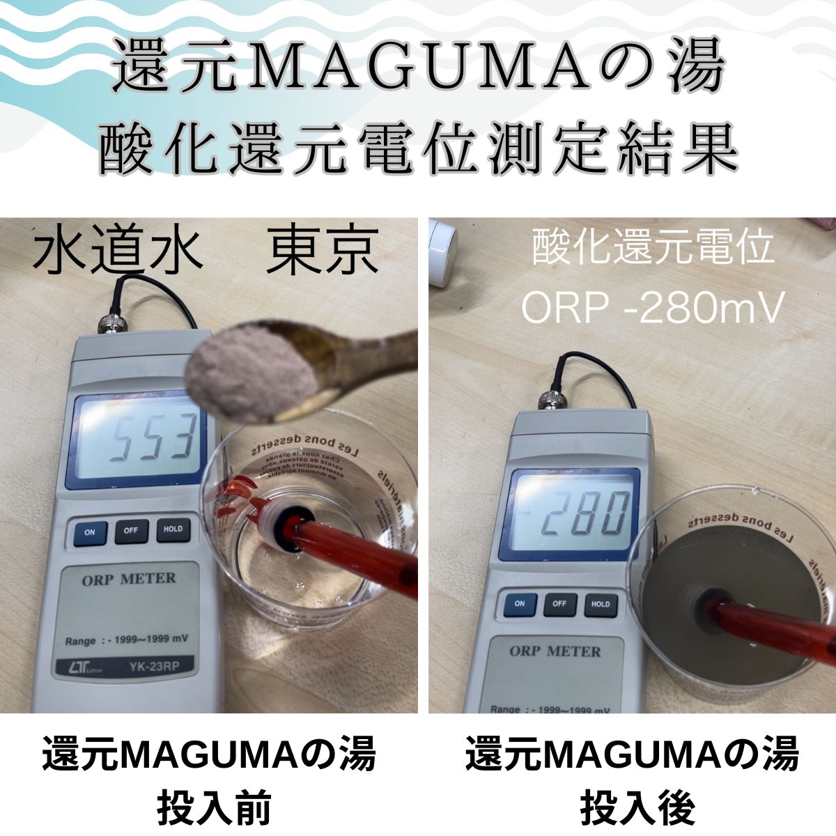 『還元MAGUMAの湯』は、還元パウダーと比べますと見た目やお風呂に入れた感じも異なりますが、水素風呂という点は同じでございます。