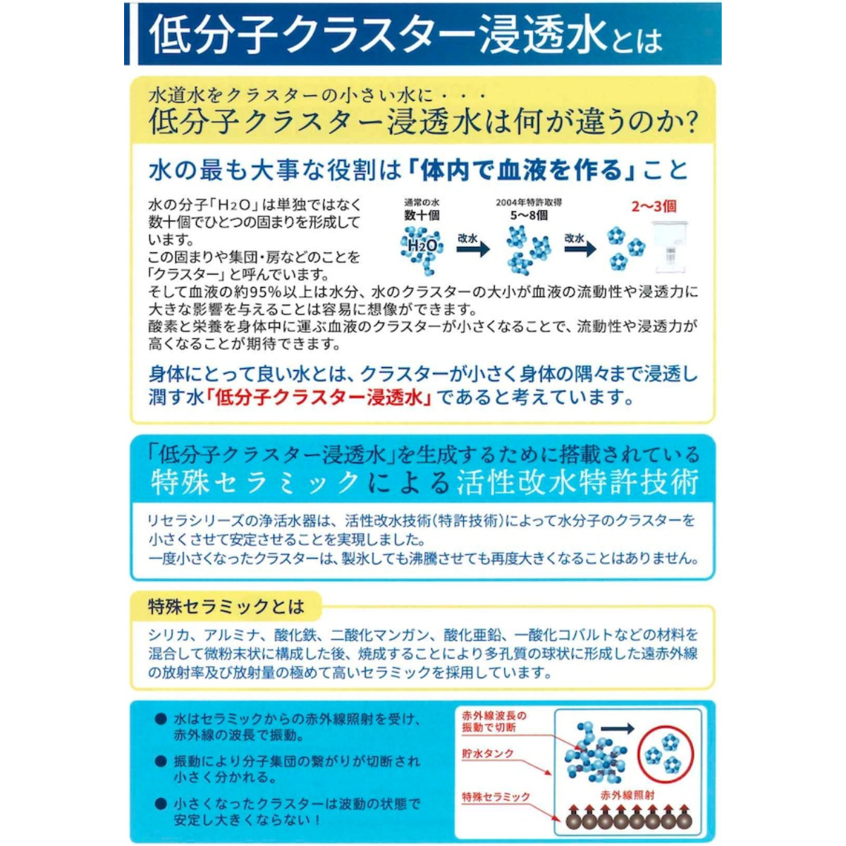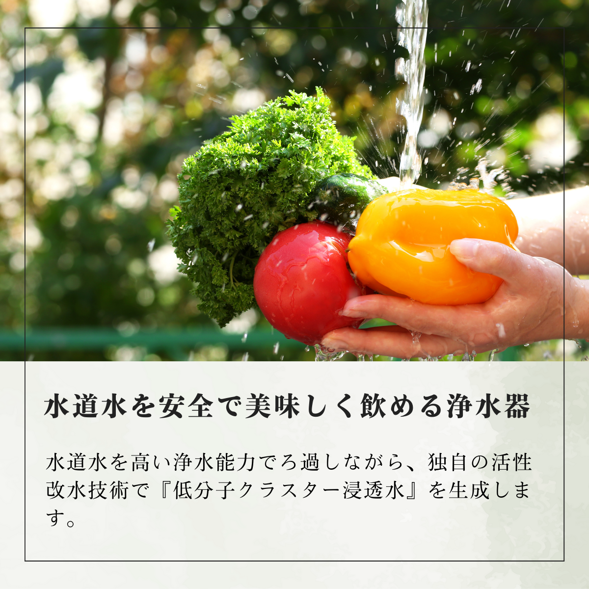 高い浄水能力でろ過しながら、独自の量子機能整合加工で水道水を活性処理します。